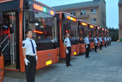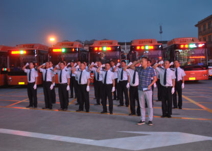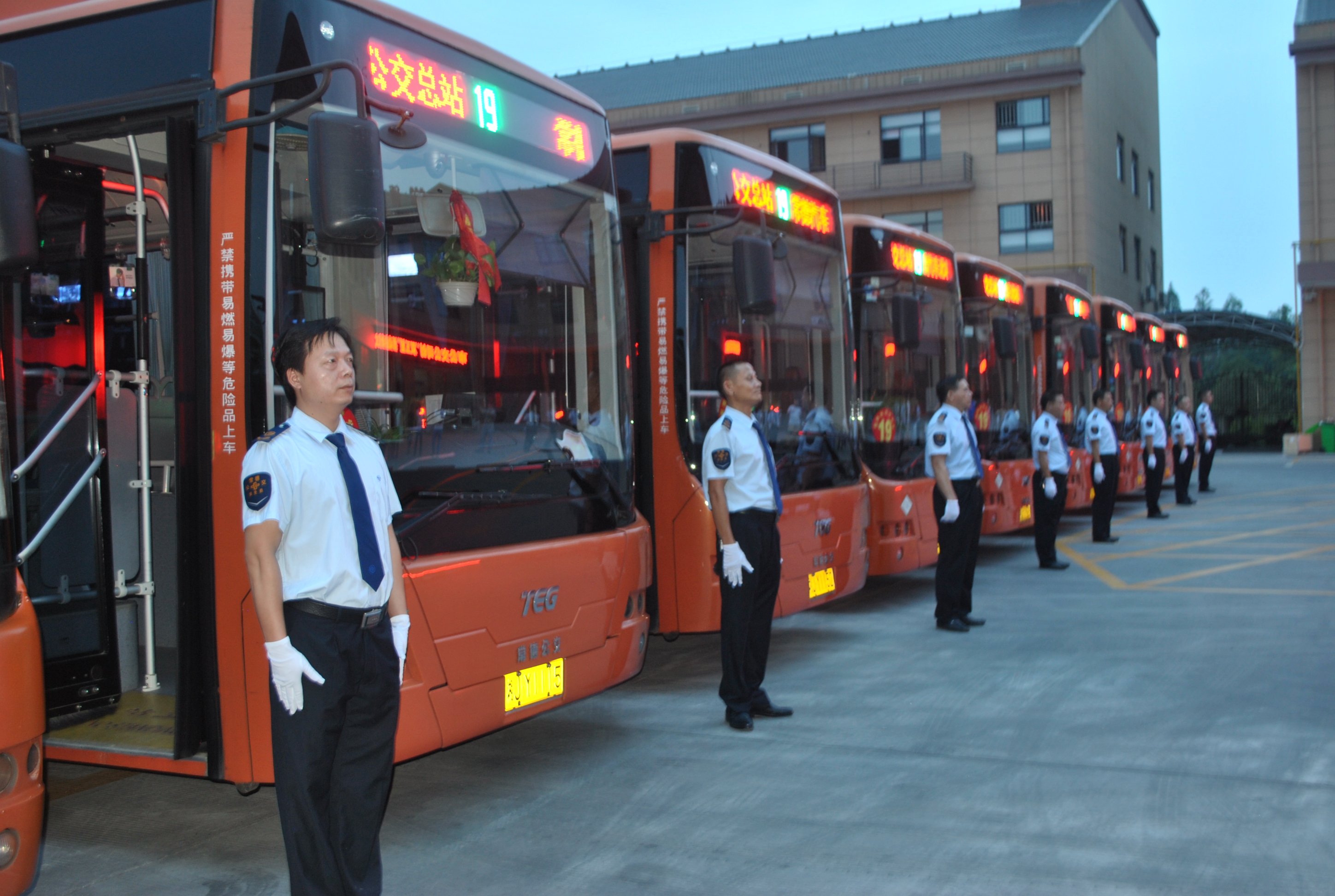 圖為19路線全體駕駛員列隊(duì)待發(fā)