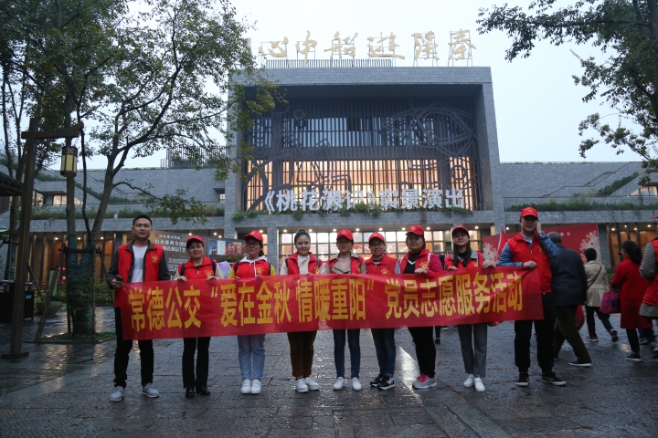 下午16:00,新坡社區(qū)近200名老年人在黨員志愿者們的陪同下,乘坐公交公司選派的愛心大巴車,前往桃花源景區(qū)觀看大型溪流漫游實景演出節(jié)目——《桃花源記》。因當(dāng)?shù)靥鞖獠患眩幱曷坊?,公交黨員志愿者們自發(fā)將活動延伸成為“陪您走段路”和“陪您看演出”兩個部分。特別是在濕滑的路口臺階及登船碼頭,志愿者們身體力行,悉心攙扶老人上下臺階、換乘船只,確保了出行安全,受到社區(qū)老人們的高度稱贊。為表達感激之情,老人們還在現(xiàn)場演奏了地方花鼓戲曲目,為志愿者們傾情獻上了節(jié)日的禮贊。