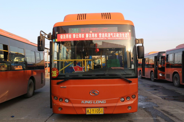 “兩會”召開前夕,市經(jīng)投集團下屬公交公司積極開展“廉政文化進車廂”活動,重點打造了一條廉政文化專線28路線,該線所有公交車車廂統(tǒng)一“換裝”,每臺車廂醒目位置張貼了6張圖文并茂的廉政文化海報,車載電視循環(huán)播放黨紀黨規(guī)、典型案例、廉政動漫等內(nèi)容。28路車輛日均發(fā)班105趟,日客流量近萬人次,途徑武陵大道、朗州路、人民路等城市主要干道,沿線黨政機關(guān)、醫(yī)院、學(xué)校多,在全市53條公交線路中最具代表性,傳播范圍廣,宣傳效果好。
