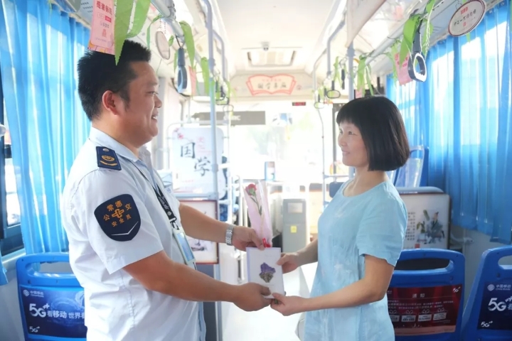 據(jù)47路駕駛員謝超介紹,47路線途經(jīng)市十一中,每天都有不少老師學生乘車出行。在教師節(jié)當天,我們向老師們贈送鮮花、卡片,同時在車廂內(nèi)開展生僻字有獎問答活動,既為老師們送上了節(jié)日的祝福,又讓廣大乘客在參與活動中加強了對傳統(tǒng)文化的了解,非常有意義。