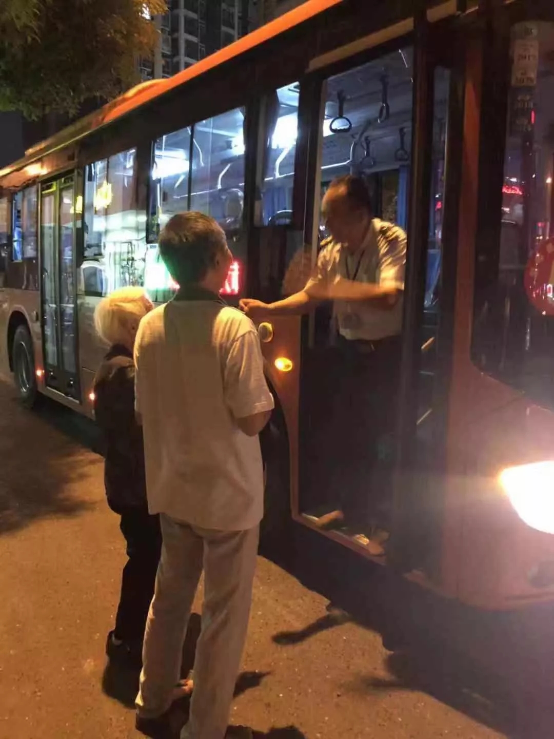 當(dāng)日18時40分左右,5路1358號車駕駛員熊小兵駕車行駛至終點站農(nóng)資大市場車站下客完畢后,發(fā)現(xiàn)一位老奶奶在車站場坪內(nèi)四處游走且神色恍惚,這引起了熊師傅的注意,在與老人進行了簡單的交流后,熊師傅根據(jù)多年的工作經(jīng)驗,判斷老人很可能與家人走失。為保障老人的安全,熊師傅先將老人帶回車場休息室,隨后立即致電公交客服中心,報告了相關(guān)情況??头ぷ魅藛T告之熊師傅,老人家屬已向客服中心撥打了尋人電話,現(xiàn)正在西園小區(qū)家中等待消息。熊師傅得知情況后,立即與線路隊長徐成偉取得聯(lián)系,請求親自將老人安全送回家。徐隊長同意了熊師傅的請求,并要求他將老人送回家后立即將車輛歸場收班。