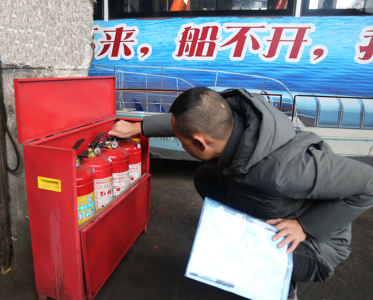 為確保春運(yùn)期間公交車(chē)輛運(yùn)行安全,各分公司提前對(duì)投入春運(yùn)的所有車(chē)輛進(jìn)行了全面安檢,所有春運(yùn)車(chē)輛和人員已審驗(yàn)合格,杜絕了車(chē)輛帶“病”營(yíng)運(yùn),并對(duì)車(chē)載滅火器、安全錘等安全設(shè)備進(jìn)行檢查,確保每輛公交車(chē)上安全設(shè)備到位、有效。春運(yùn)期間,各修理廠人員將全天候值班,車(chē)輛發(fā)現(xiàn)故障后在第一時(shí)間及時(shí)搶修,確保車(chē)輛無(wú)故障安全運(yùn)行。