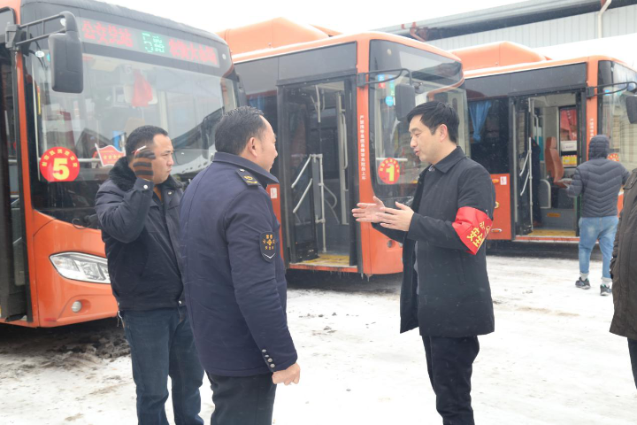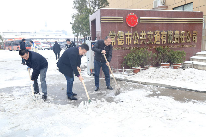 面對重大雪情,公交公司董事長沈小平、總經(jīng)理胡安平等領導班子,每天帶領干職員工踏冰踩雪、提早趕至各公交站點及公交車途徑最多的交通要道開展鏟冰除雪工作,確保公交車安全平穩(wěn)運營。