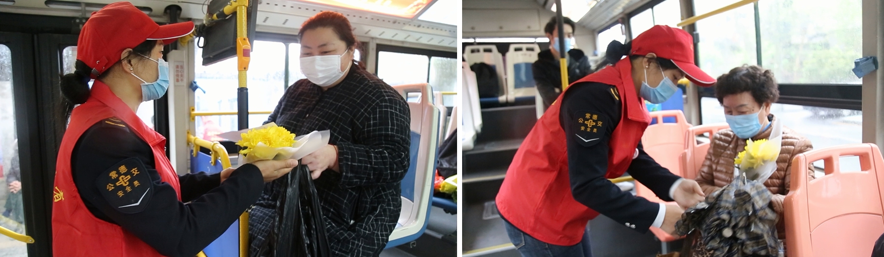 在城區(qū)客流集中站點,公交志愿者們現(xiàn)場做好乘客問詢、客流疏導、調(diào)度指揮等工作,確保進出站車輛規(guī)范有序,耐心引導乘客排隊乘車并幫扶老、幼、病、殘等群體上下車,同時為乘客提供導乘服務咨詢。為倡導文明祭祀新風尚,打造安全、整潔、有序、便捷的公交出行環(huán)境,公交車內(nèi)還張貼了文明祭祀公益廣告標語,志愿者們向過往的祭掃群眾免費更換菊花及發(fā)放《文明祭掃倡議書》,呼吁大家文明祭掃、綠色出行。市民們紛紛表示支持,并主動將手中的紙錢等兌換成鮮花。
